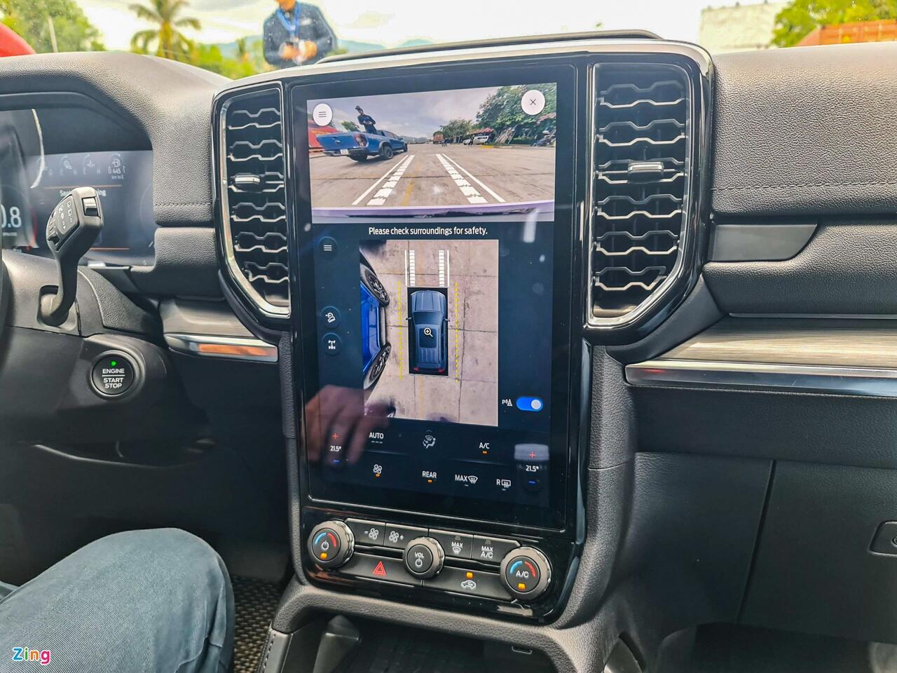 An toàn Ford Everest gồm camera lùi, cảm biến trước, sau và camera 360 độ. Tất cả các phiên bản đều được trang bị 7 túi khí.